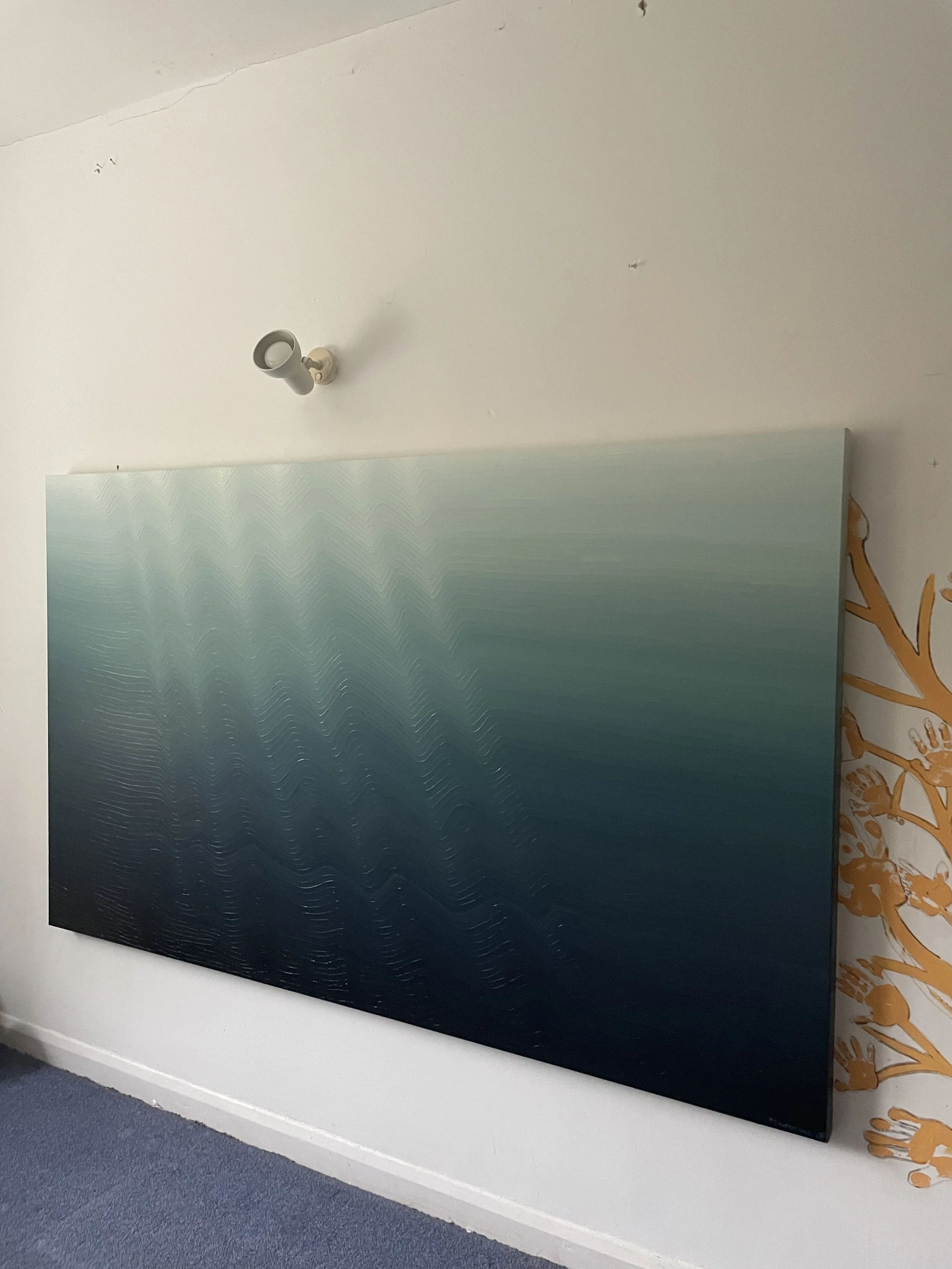 It was bigger than my usual size of 120 x 150cm which was great. Remembering the feeling of being submerged in the Ocean, the movement and light, a tranquil space full of positive energy.
